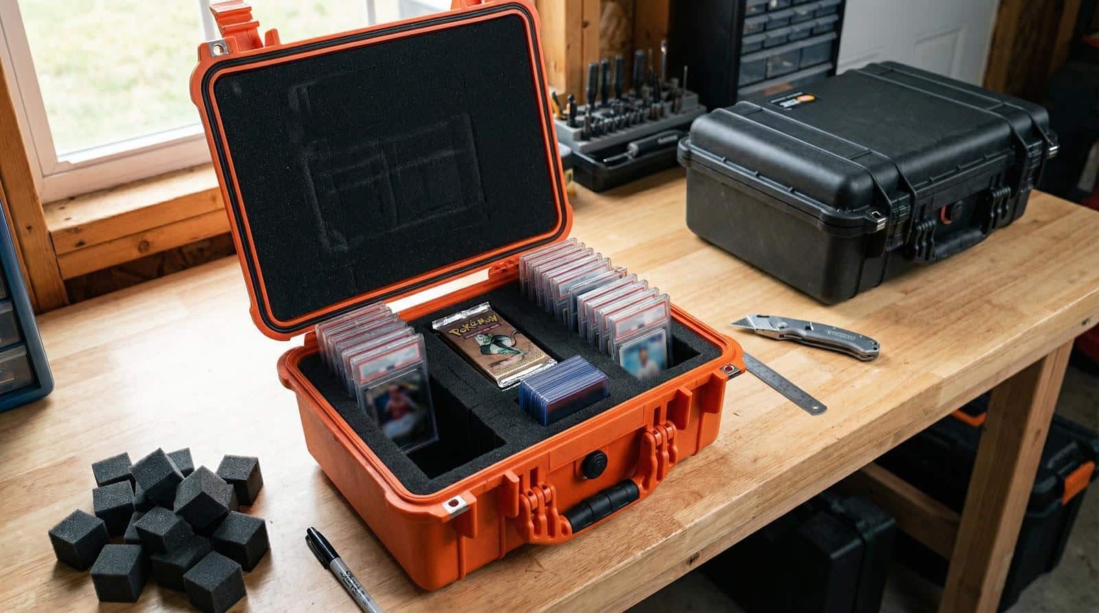 Both boxes arrive watertight, dust-tight, and nearly crushproof. O-ring gaskets seal like Tupperware, and automatic pressure valves stop altitude shifts from warping lids. Inside, pre-scored pluck foam begs for customization. Map three long channels, remove the cubes, and you have room for 90 PSA slabs in a Pelican or about 60 in an Apache. Need space for packs or supplies? Cut wider bays instead.