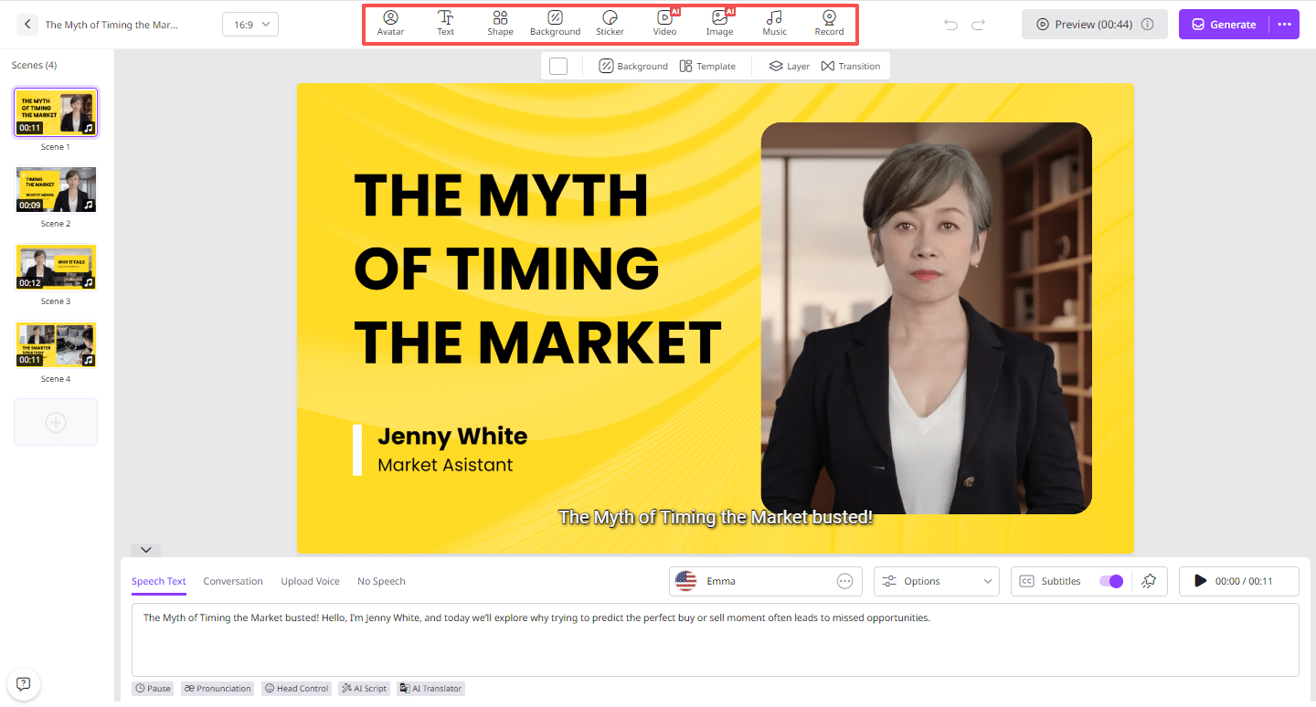 - Use the Online Video Editor to customize your video—modify backgrounds, insert text, apply animations, and fine-tune details.